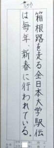 字の配置がとても難しい横書きですが、上下の位置、左右の間隔によく気配りしながら書くことができています。