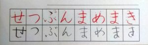 お手本をよく見て、一字一字ていねいに書けています。特に「め」が上手です!
